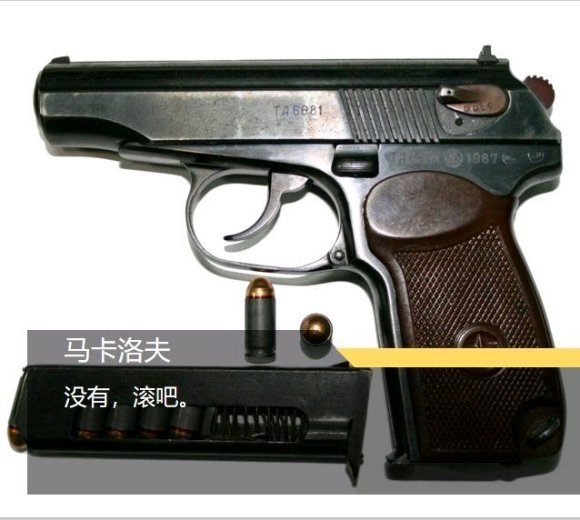 面无表情的马卡洛夫转过身,举起手中的武器,吹散了硝烟。